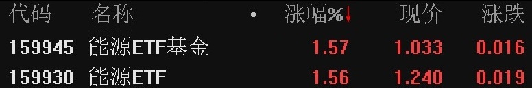 受盘面影响,能源ETF基金、能源ETF涨逾1.5%。